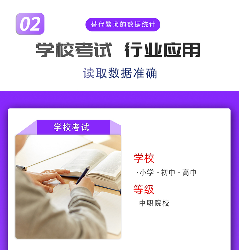主要應(yīng)用于學(xué)校,培訓(xùn)機(jī)構(gòu),職業(yè)鑒定站,考試評卷、考試報名、多行業(yè)的測評、考核、選舉